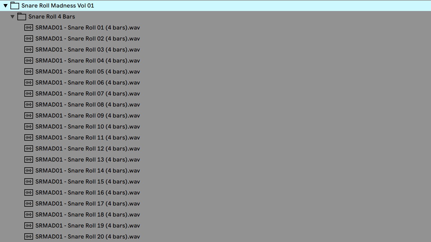 SNARE ROLL MADNESS VOL 01 is a collection of 160 high quality snare roll build-up samples, designed to create tension, energy, and impact in your breaks and transitions.